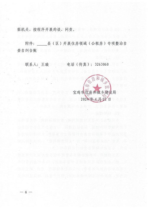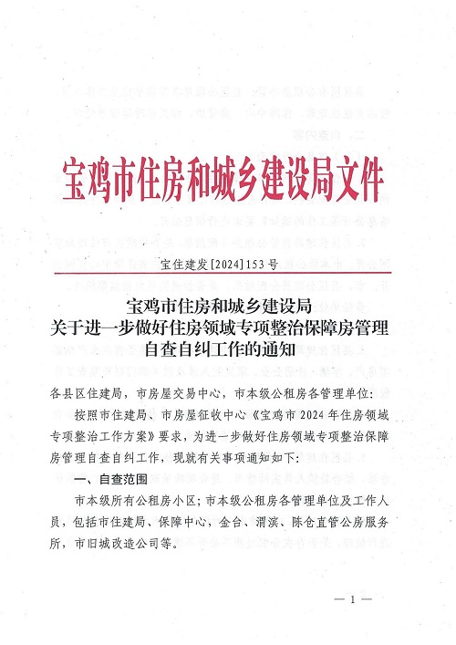 宝鸡市住房和城乡建设局关于进一步做好住房领域专项整治保障房管理自查自纠工作的通知