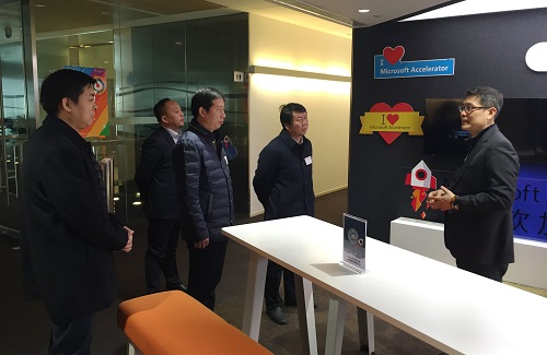 1月23日,蟠龙新区党工委副书记、管委会主任杨明宽一行前往微软公司北京总部考察,并与微软(中国)有限公司战略创新孵化运营部总经理戴子珽进行会谈。