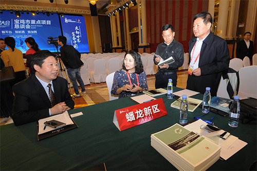 随后,在洽谈区分别与隆基集团、东方园林、百顺集团、云南城投、上海宝鸡商会、河南广东商会等主要负责人进行深入对接。他表示:蟠龙新区开发建设其时已至、其势已成,新区独特的自然风貌,优越的地理条件,全新的开发理念,是各位企业家投资的热土 、创业的乐园、生活的家园。我们热忱期盼各位能够抓住发展丝绸之路经济带的黄金期,相约魅力蟠龙,同叙深厚情谊,共谋合作发展,携手共创辉煌。