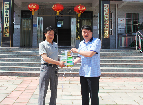 从贫困户家庭离开后,杨明宽主任一行与黄家村干部进行了座谈,详细了解黄家村的村民生产生活状况,共商发展大计,在扶持贫困户增收,改善村容村貌促进当地经济社会发展方面建言献策。最后,为黄家村村委会赠送了猕猴桃种植及病虫害防治、家畜养殖方面的农技科普图书。