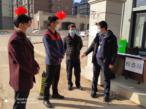 韩明芳一行依次对蟠龙观邸物业公司,蟠龙观邸A、B区和蟠龙观邸项目部进行实地检查,并对小区防疫工作提出具体要求。
