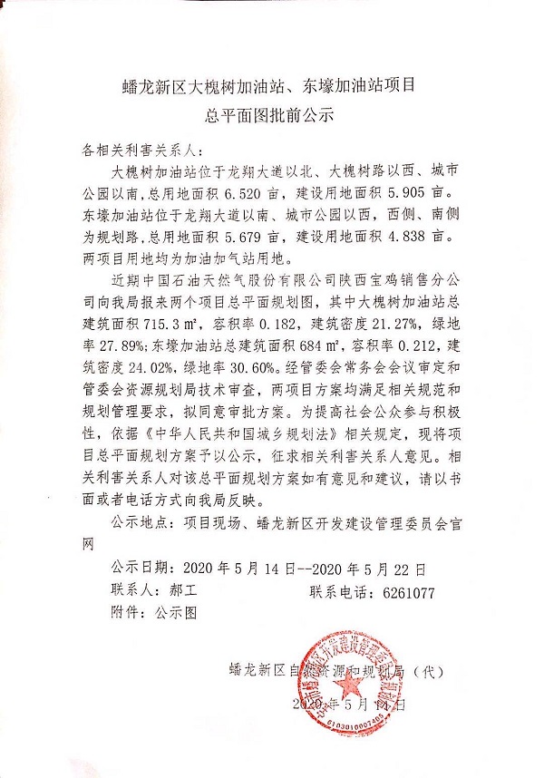 蟠龙新区大槐树加油站、东壕加油站项目总平图批前公示