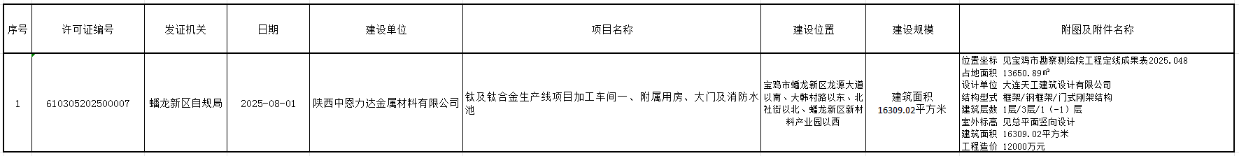 钛及钛合金生产线项目工程规划许可公示