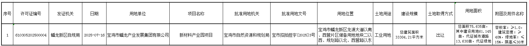 蟠龙新区新材料特色产业园建设项目用地规划许可公示