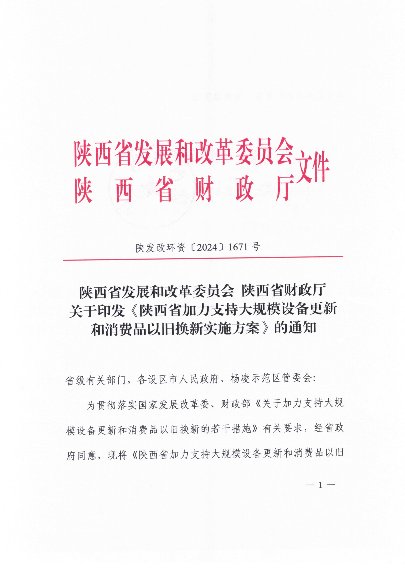 陕西省加力支持大规模设备更新和桥废品以旧换新实施方案