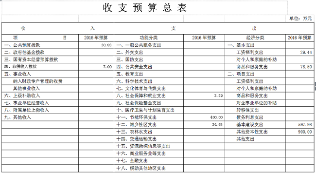 六、2016年部门预算报表