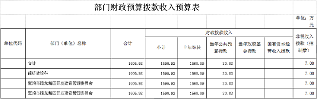 宝鸡市蟠龙新区管委会是主管是市政府直属机构,正县建制,无下属基层预算单位。经费管理方式为全额拨款事业单位。