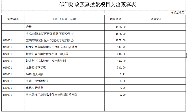 宝鸡市蟠龙新区管委会2016年部门预算说明
