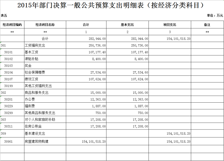 附件5:2015年度部门决算一般公共预算支出明细表(按支出经济分类)