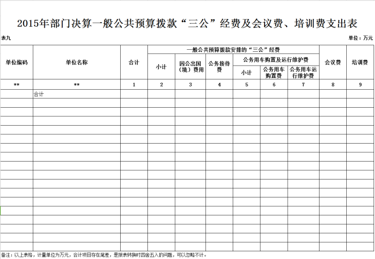 附件9:2015年度部门决算一般公共预算拨款“三公”经费及会议费、培训费支出表
